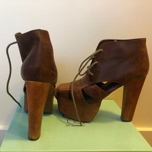 Heels are approx. 5 inches high. Platrorms are approx. 2 inches high.