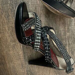 Jeffrey Campbell 8.5 excellent near new condition aside from small scuff front of one heel last picture embellished rhinestone/chains 3.7” heels in outstanding condition! Retails almost 300 new- these are stunning and perfect for grad season/weddings