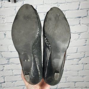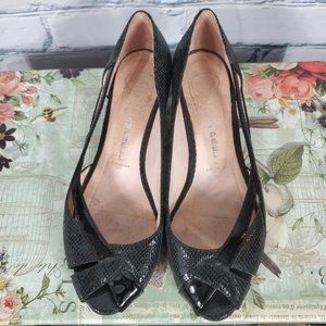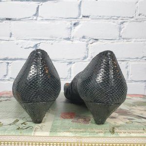 These cute kitten heels from Jeffrey Camlbell are a mix of patent and snake embossed for a mixed texture look.