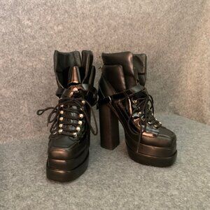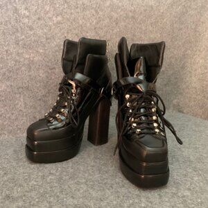 Jeffrey Campbell Delusion Double Stacked Platform Heel Lace Up Black Leather Boots