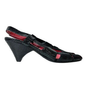 Jeffrey Campbell Frizon Black Leather Slingback Peep-toe Snake Pump