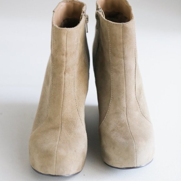 Jeffrey Campbell Havana Nude Beige Suede Zipper Detail Platform Wedges