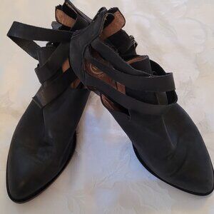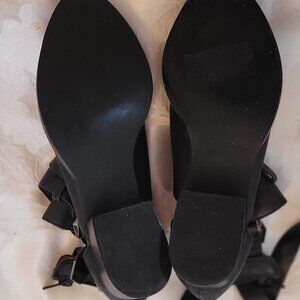 Cutouts on the sides and ankle straps with buckles that wrap around your ankle. Very sharp.