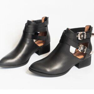 🎀Jeffrey Campbell Ibiza Everly Black Double Buckle Booties Leather