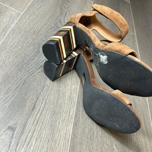 Jeffrey Campbell Lindsay Open Toe Brown Suede Striped Heels Size 9