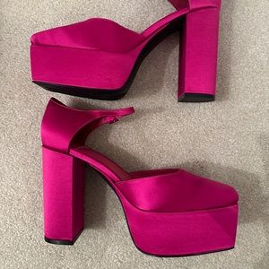 Jeffrey Campbell Over-N-Out Fuchsia Satin Platform Shoes NWOT