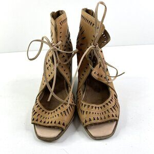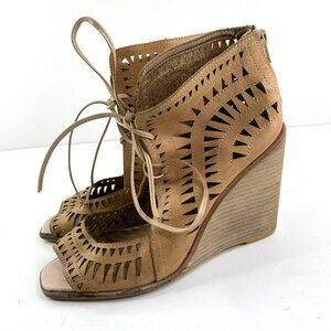 Jeffrey Campbell Shoes Size 10 Rodillo Tan Cut Out Boho Lace Up Wedge Sandals