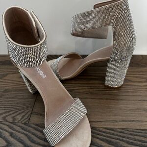 Elegant silver heels with sparkling rhinestones. Perfect for adding glamour to any outfit.