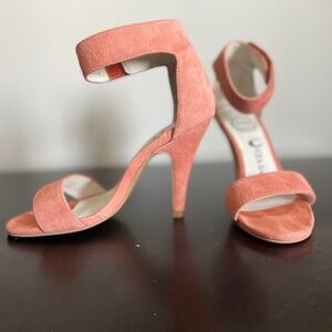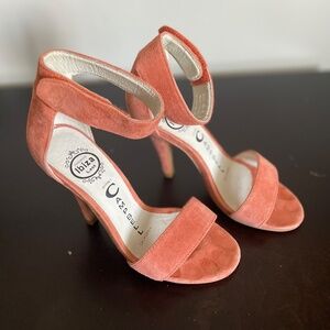 Jeffrey Campbell Suede High Heel Sandals with Ankle Strap — Coral