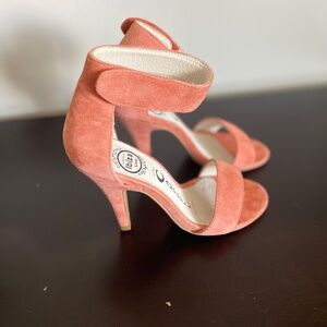 Authentic JC Hough soft suede heels. These are cushioned, and the sole grips so they won’t slip from under you. Very easy and comfortable to walk in.