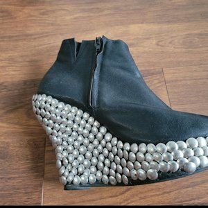 Jeffrey Campbell, Wedged Heel Open Toe, Black Leather with Studs, Size 8.5