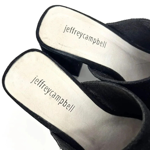 Jeffrey Campbell Women's Size 7.5 Black Suede Open-Toe Leather Mules