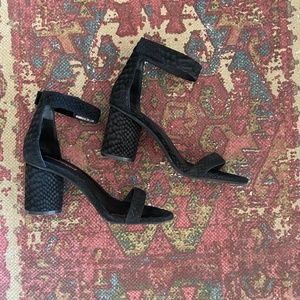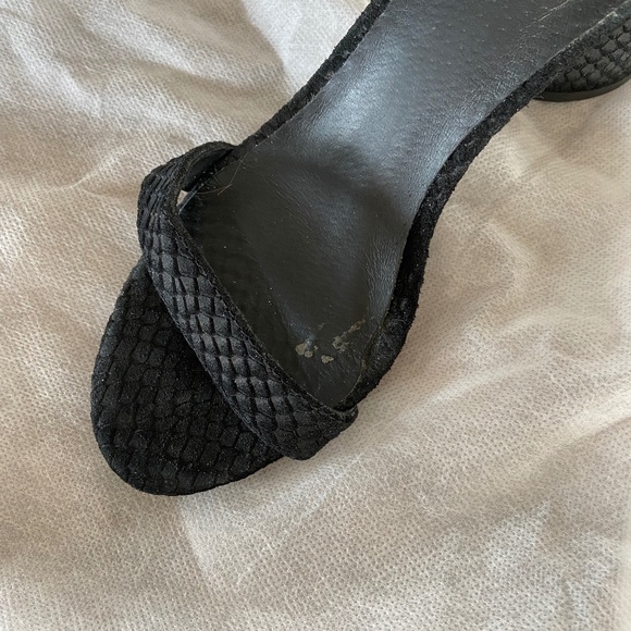 Jeffery Campbell Lelaine Platform Black Snake Suede Sandals. Size 7, Worn twice, Original bags and Box. Used like new. Small scuff on inner sole under the ball of your foot so never seen. 2 1/2 inch heel.