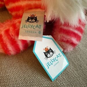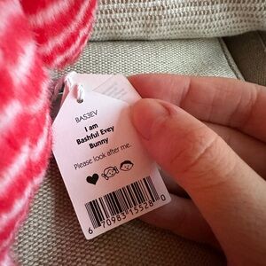 Adorable striped red plush bunny toy perfect for kids. Soft and cuddly, ideal for playtime and snuggles.