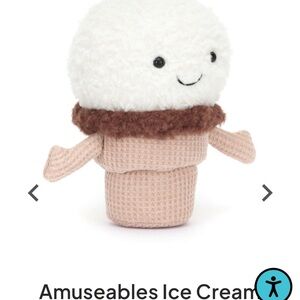 Adorable Jellycat ice cream plush toy. Features cream and brown colors. Perfect for cuddling.