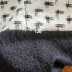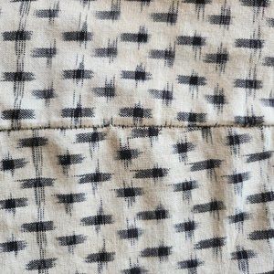 Linen black and white dress by montreal designer Jennifer Glasgow. The seams are stretched in some places at the hips, as shown in the pictures, but could easily be repaired by a seamstress.