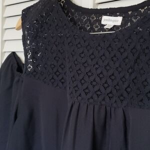 Jennifer & Grace Cold Shoulder Blouse, Black, 1X