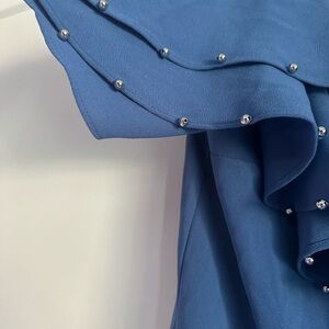 Jennifer Lopez Blue Ruffled Off-Shoulder Blouse