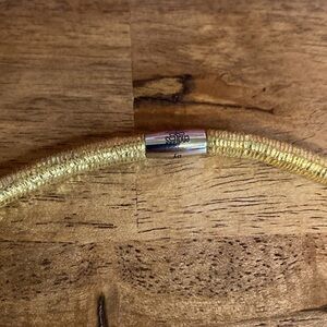 This is a lightweight gold rope material with pendants. It is not a chain. It has a magnetic clasp. Very cute! Style with your other gold jewelry or wear alone. A very pretty piece.