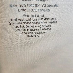 This is a cold shoulder JLO knit top. Only worn 1 time. If you are looking for some sass and class, this top is for you. It is light weight, has sparkle, and it is beautiful on. It is 98% polyester and 2% spandex. Shell inside. Size M. It does fit tight to the body, and it does have a little stretch. 32 inches long and 15 inches wide (30-inch waist)