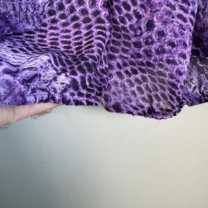 Jennifer Lopez Purple Snakeskin Print Satin Long Sleeve Sheer Blouse Size Large