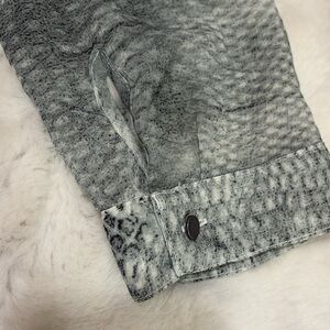 Channel bold sophistication with this Jennifer Lopez sheer blouse in a sleek snake print, size Small. Featuring a button-up front, long sleeves, and a modern pointed collar, this top blends sultry edge with wardrobe versatility. The semi-sheer fabric adds a flirtatious touch, perfect for layering over a bralette or styling solo with high-rise denim and heels for a night-out slay.
