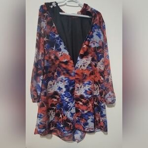 Jennifer Lopez Urban Allure Floral Tie Neck Chiffon Dress