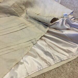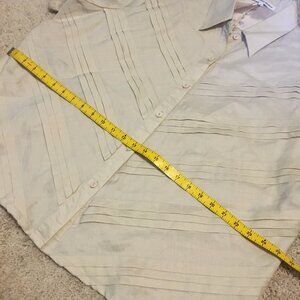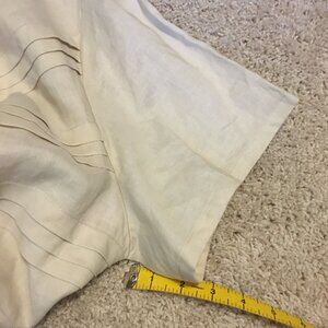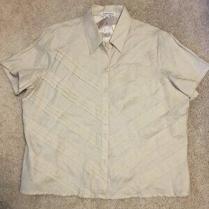 Very good preowned condition, cream coloured button down, short sleeve shirt made of ramie with diagonal pintuck accents by Jennifer Woman, part of Jennifer Glasgow's line. A brilliant designer and high quality item from their fashion line. Needs some serious ironing, but is absolutely beautiful.