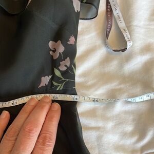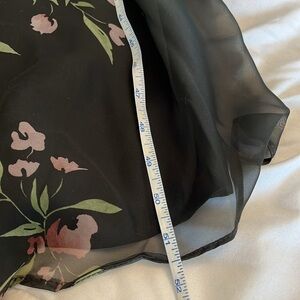 Stunning black maxi dress with floral print. Features a flowy design and sheer sleeves. Worn Once for a Wedding EUC. Like new