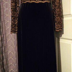 Jeremy Scott Braemar Gold Laced & Black Velvet Gown - Size 14