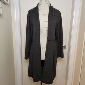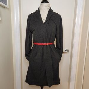 Long Charcoal Heather Grey long sleeve Cardigan Robe Wrap Sweater with side Pockets, by Natori.