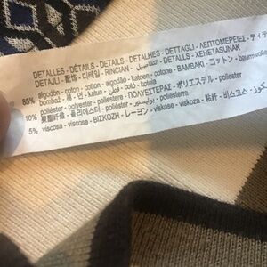 Cute collar three button top Tan, brown, navy blue pattern New condition Jersey tape