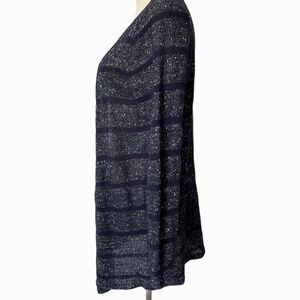 Jess Sz.M Dark Blue Long Line Mid Length Striped Speckle Knit Cardigan Cozycore
