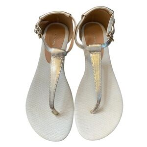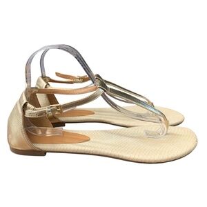 Jess T-Strap Sandals Womens 9 Gold Brown Tan Beach Vacation Minimalist Boho Flat