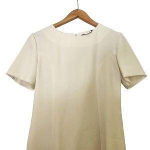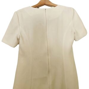 Jessica, white 100% polyester, short-sleeve, sheath dress. Crew-neck,zip-up back, lined. Great for weddings, parties, showers and more! Super comfortable, cute dress In great shape size 8