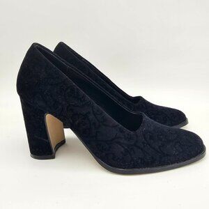 Jessica Black Velvet Chunky Block Heel, Size 7