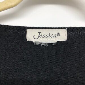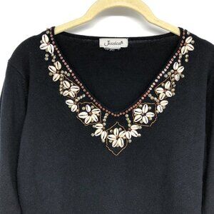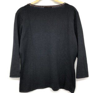 Jessica Black shell embellished V-neckline 3/4 Sleeve Blouse size ~M