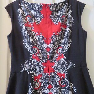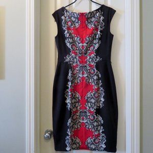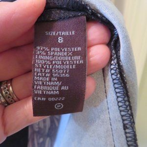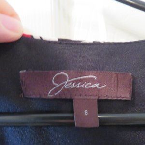 Jessica dress, size 8. Very flattering design, and a bit on stretch, just below the knee. Only worn once to a wedding, but could be worn to the office as well. Can be worn with on without the belt. The belt that came with it came apart, but you could replace it with any skinny belt.