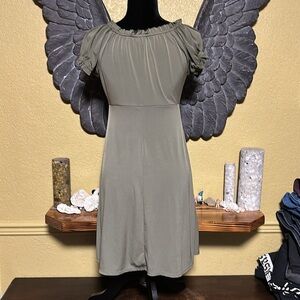 Excellent condition Olive green color, lighter color Size 6 Stretchy Pit to pit 17” Length 35”