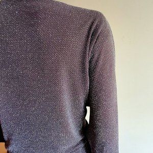 This dress is in mint condition, only worn once. It's difficult to capture, in the photos, the sparkle of the silver woven throughout this grey dress. The photo of the neckline shows most clearly the sparkle to this dress. Beautiful, unique sleeves. This dress is fully lined.