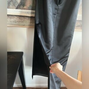 Jessica McClintock Gunne Sax Vintage Black Satin Floral Embroidered Forma Gown