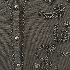 Jessica Petite Vintage Grandmacore Delicate Beaded Button Up Knit Black Cardigan