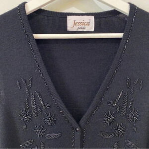 Jessica Petite Vintage Grandmacore Delicate Beaded Button Up Knit Black Cardigan