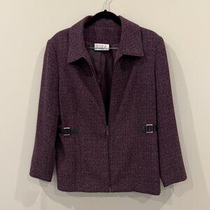 Jessica Petites Zip Front Collared Blazer Suit Jacket Purple/Black 16P