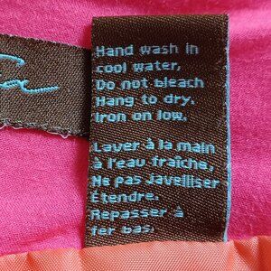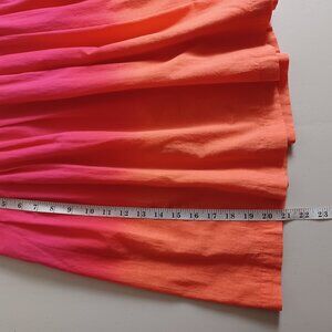 A mini skirt in a vibrant pink orange gradient colour. Made from lightweight cotton with no stretch. It’s fully lined and falls at above knee-length. Perfect for summer. Gently worn, great condition.