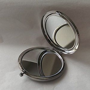 A dual-sided compact mirror that has a regular mirror on one side and a magnifying on the other! The mirror is silver with a light rose gold 3D print of Jessica’s face.