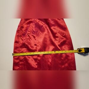 she's a shiny stunner! Just need to find some matching long gloves ;) it does have a seam rip at the back slit. easily fixable. and a couple of small holes at the bottom(see last picture's) wonderful dress up/costume dress. it has built in corset bones. make me an offer.