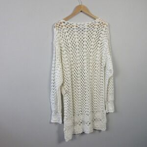 Jessica Roberts Crochet Vtg Y2K Tunic Dress L Ivory Open Knit Beach Boho 568