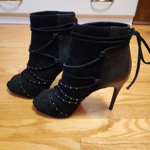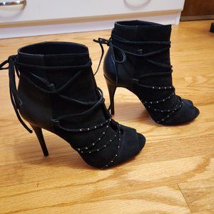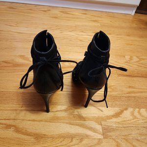 Peep toe heels with laces. Unleash your inner and millennial in these 3.5 in heels that are perfect for the club! Paired with a bodycon bandage dress and chunky necklace, these shoes will complete any outfit.