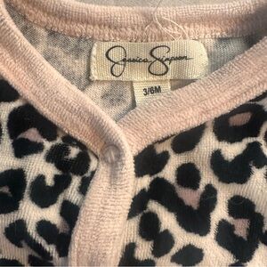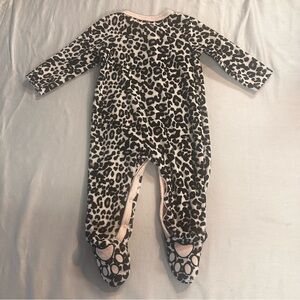 Jessica Simpson Black and Cream Leopard Footie with Pink Trim